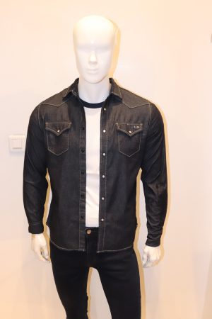 Bleu clair, coton, logo imprimé à l’arrière, deux poches poitrine plaquées, col classique, manches longues, ourlet droit.